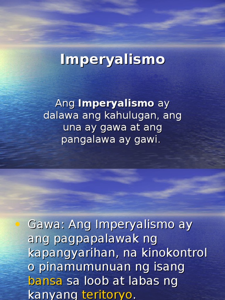Ano nga ba ang imperyalismo. I-browse ang mga halimbawa ng paggamit na kolonyalismo sa mahusay na Tagalog corpus. Ano ang kahulugan ng neo kolonyalismo Senast uppdaterad.