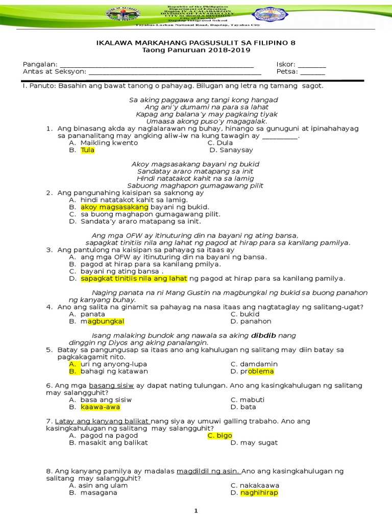 Filipino 8 2nd Periodical Test Ok