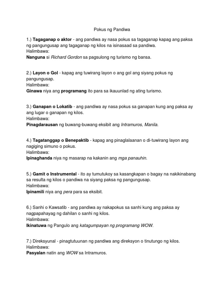 Ano Ang Kahulugan Ng Pokus Ng Pandiwa